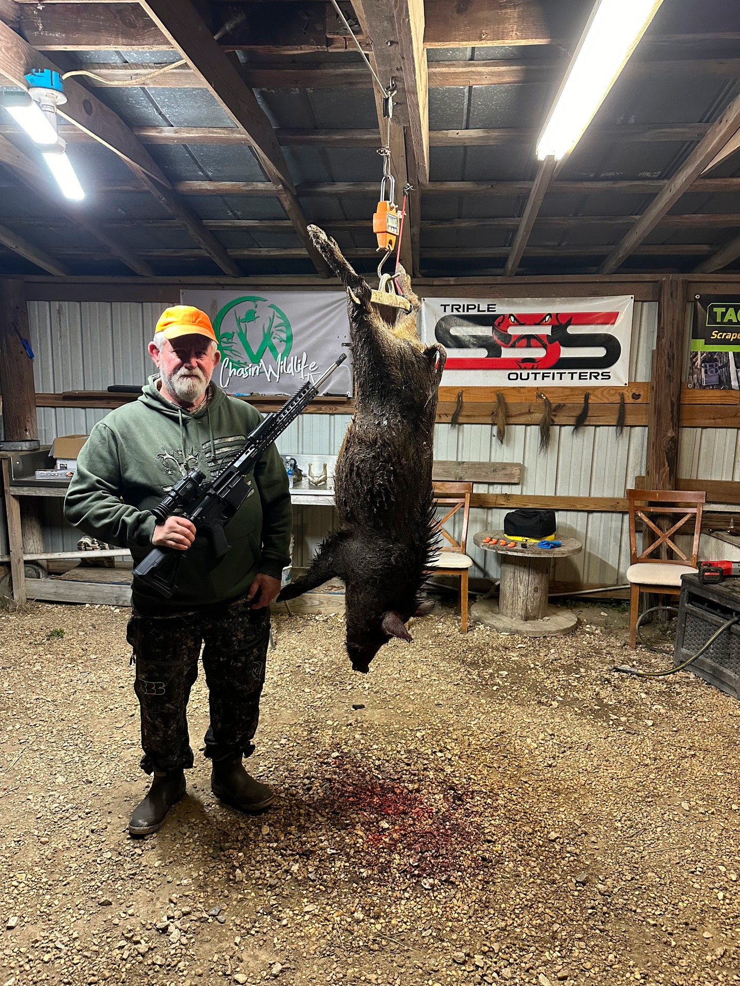 *It is important to note, once you pull the trigger, or have a chance to pull the trigger that is your opportunity. We take pride in knowing that you’re coming to hunt with us because you feel confident that we’ll put you in the position to take a wild hog. One of the main reasons is because we keep minimal pressure on them. When a wild hog senses excessive pressure, they move on to the next branch or creek and may not return for quite some time. We like to get in, take care of business, then get out.